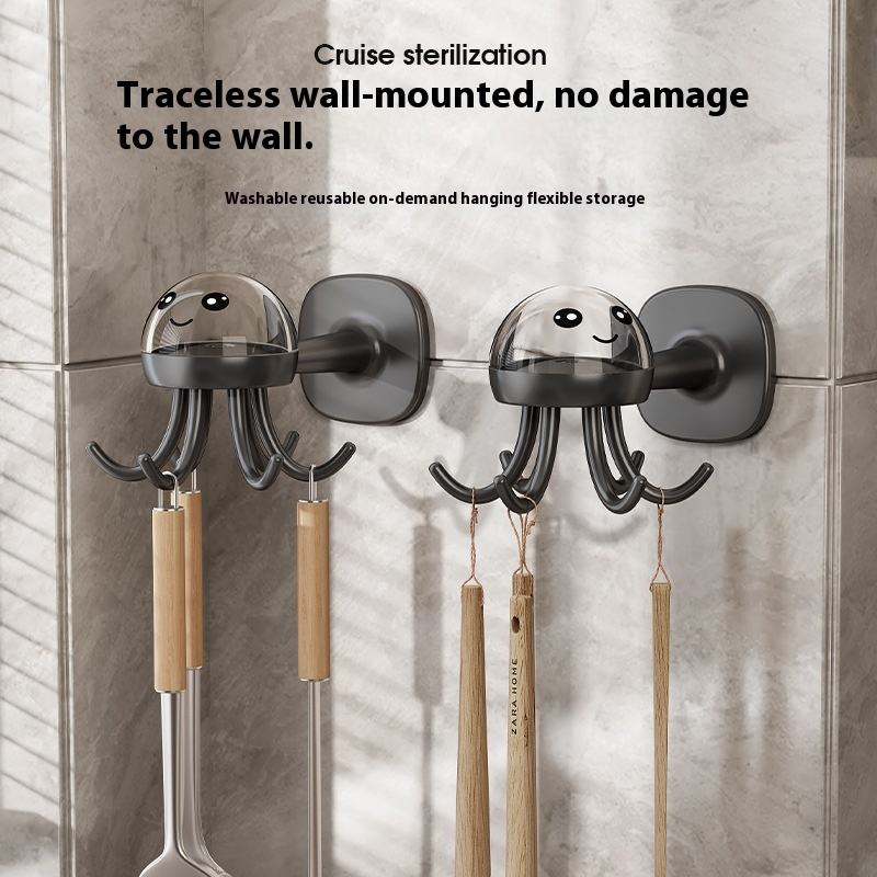 No-Drill Little Octopus Wall Storage Rack – 360° Rotating Multi-Functional Hook Organizer