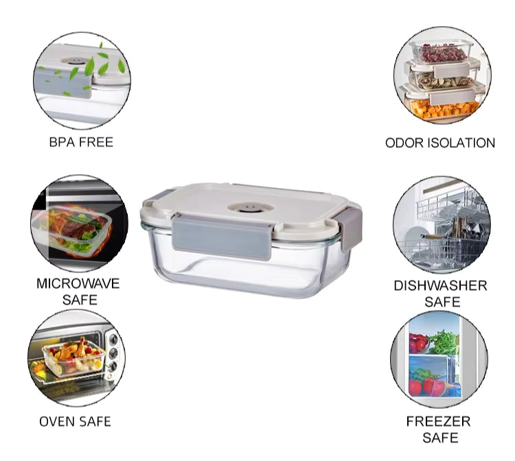 Microwave, Oven, and Freezer Safe Glass Vacuum Food Storage Container with Vacuum Pump