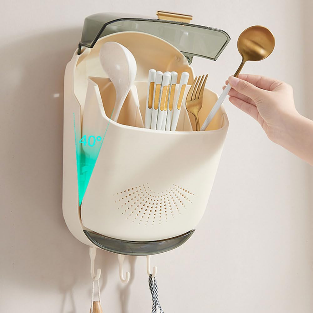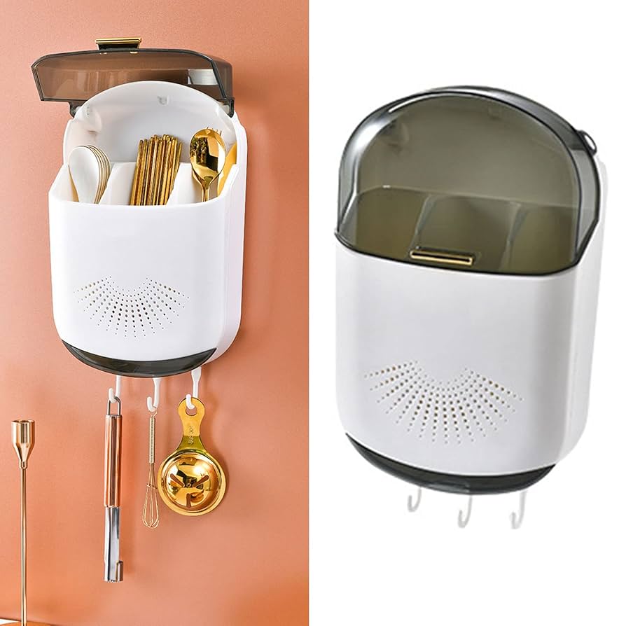 Functional Wall Mounted Cutlery Storage Box – Large Capacity Plastic Spoon & Chopstick Organizer for Modern Kitchens