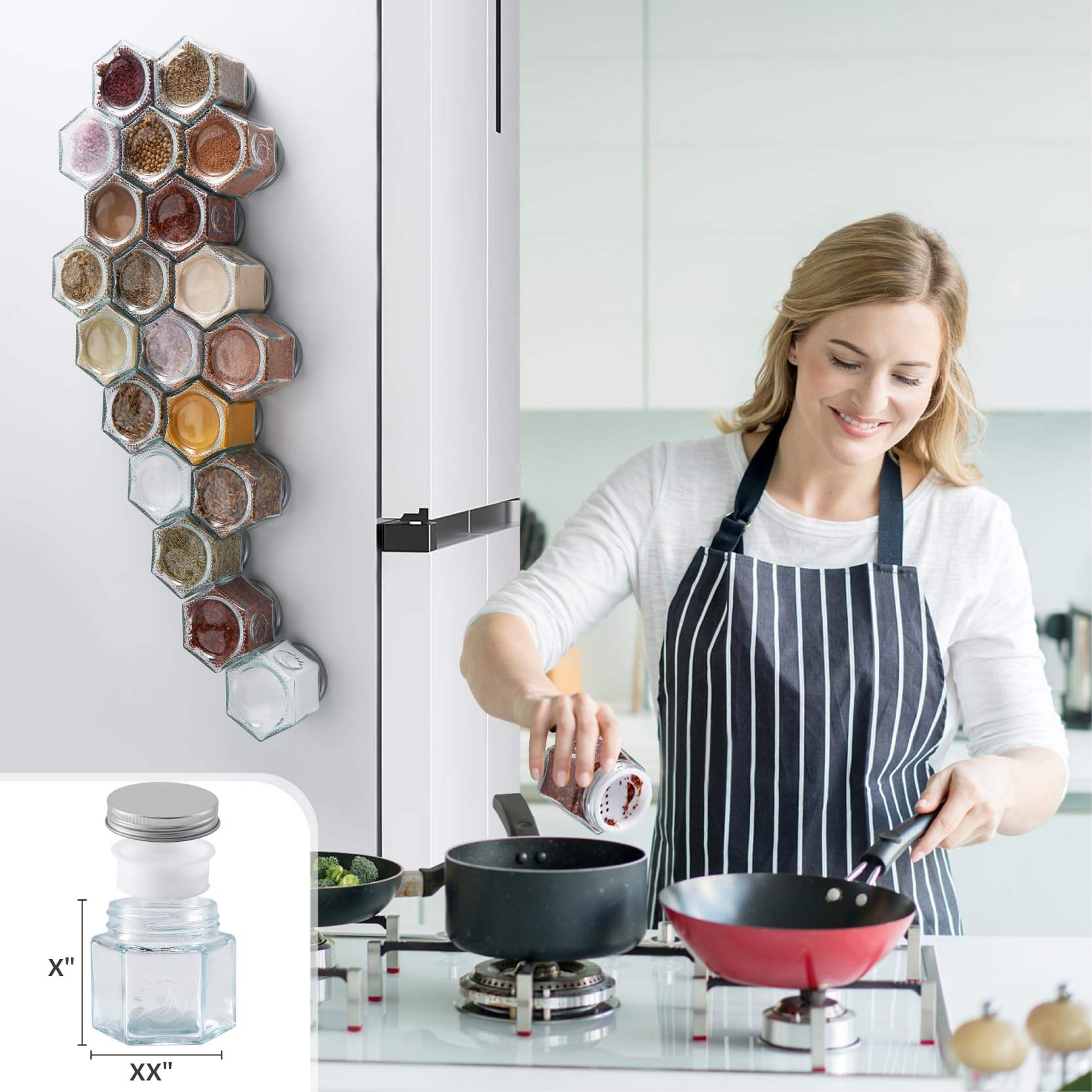 Kitchen Spice Organization - Magnetic Hexagon Glass Jars with Lids 4oz