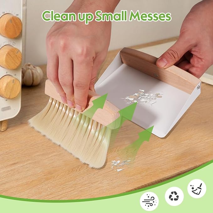 Mini Dustpan and Brush Set - Wooden Handle, Metal Dustpan